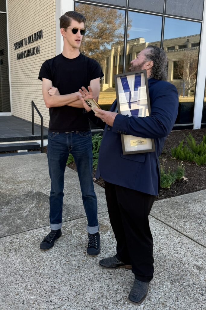 Keenon and Newlin posed with the actor’s Blue Ribbon Medal of Excellence for Alumni Success Jan. 2 before Newlin headed back to the west coast.